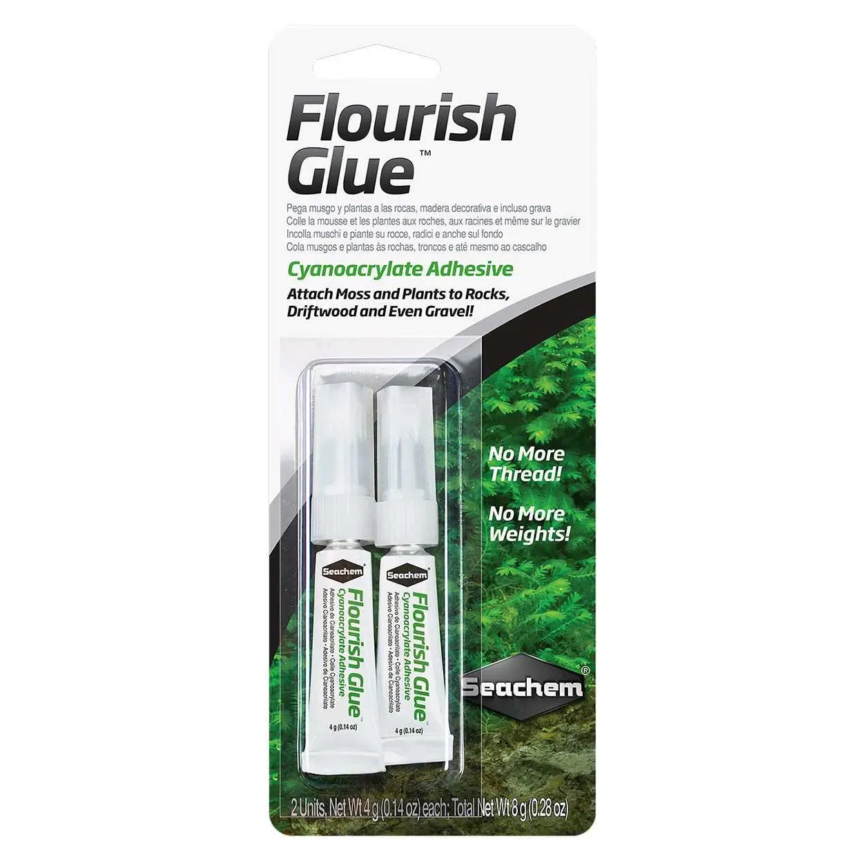 El potente adhesivo de cianoacrilato fija el musgo y las plantas acuáticas.